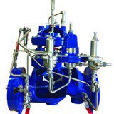 The valve switches between high and low pressure pilots based on flow rate. The pressure reducing pilots independently adjust to suit the optimal downstream pressure. The valve requires no electrical power or independent flow signal, as it takes its flow signal from an orifice plate installed on the valve inlet. The integral backup system protects against diaphragm or pilot failure, reducing the need for immediate service. The valve is available in sizes 4-12 inches (DN100-DN300) with a minimum pressure at the valve inlet of 29 PSI (200kPa/2 barg).