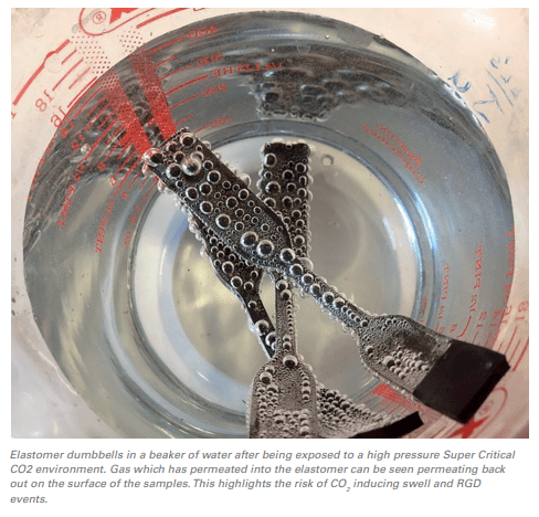 Elastomer products are being extensively tested in high-CO2 environments, including supercritical conditions. These materials have demonstrated particular resistance to CO2 – induced RGD and leaching, with resistance to high levels of swell seen in other similar compounds, making them ideal candidates for CCUS applications.