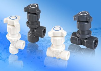 Throttle Master needle valves are constructed from PVC, unpigmented natural polypropylene and hi-purity PVDF and produced in Globe pattern straight 180” and Angle pattern 90” styles. They are available in standard end connections of ¼”, 3/8” and ½” FNPT with tubing connections available. The valves all injection molded with rugged design and construction and needle finish, SPI/SPE No. 1, bubble tight with low torque shutoff for long term performance. They feature 24 pitch metering threat for 20% finer metering control. Teflon sealed for chemical resistance, the needle valves are designed for panel mounting without fasteners to 1/16” to ½” thick panels. They do not contain any elastomers or O-rings, metals or lubricants to prevent contamination and corrosion.