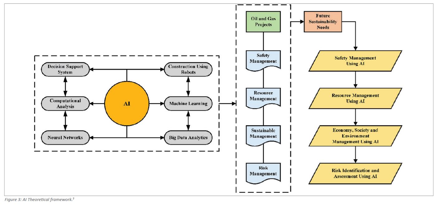 Additionally, TotalEnergies SE uses an AI-driven robotic system called “Argos” to analyze multiple scenarios, aiding complex decision-making to optimize production and reduce costs.10 These examples highlight the broad and impactful applications of AI across various facets of the oil and gas sector, driving efficiency, cost reduction, and environ-mental sustainability.